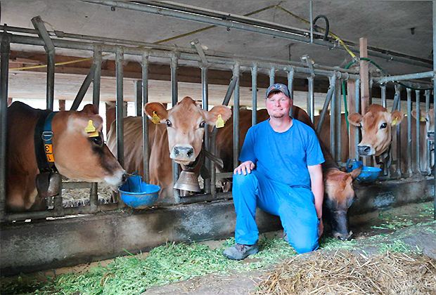 Niklaus Rentsch hat ein Ziel: Er möchte von der Landwirtschaft leben können. Aus diesem Grund stellt er den elterlichen Betrieb von der Schafhaltung auf Milchwirtschaft um. Mittlerweile stehen elf Jersey-Kühe im Stall.