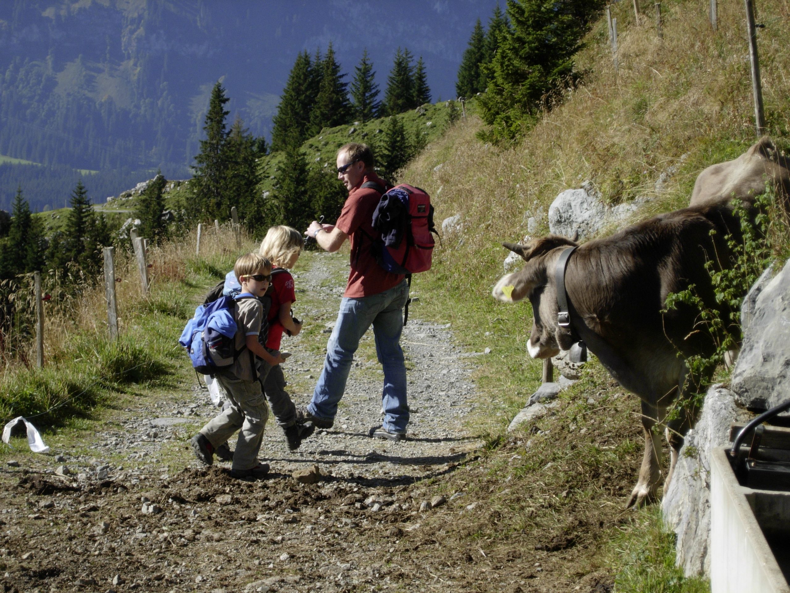 Nähern Sie sich den Kälbern nicht und berühren sie die Tiere niemals. Mutterkühe haben immer ein Auge auf ihre Jungen und können sie verteidigen.