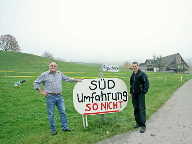 In Küssnacht am Rigi SZ ist eine Umfahrung geplant. Diese soll aus Kosten-gründen offen verlaufen und zerschneidet einige Bauernhöfe komplett. Dagegen wehren sich vor allem die betroffenen Bauern.
