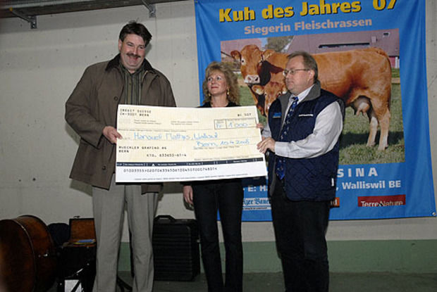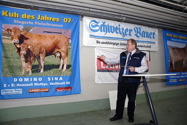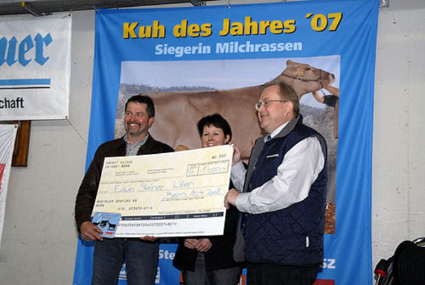 Die Besitzer der Siegerkühe im Wettbewerb "Kuh des Jahres" wurden am Donnerstag in Posieux FR ausgezeichnet. Bei den Milchrassen gewinnt Ace Arve von Edwin Steiner, Wilen bei Wollerau. Bei den Fleischrassen lag Domino Sina von Hansueli Mathys, Walliswil, vorne.