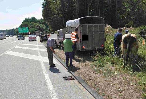 Die Kuh rannte auf die Autobahn in Fahrtrichtung Zürich, übersprang die Mittelleitplanke und lief dann weiter auf der Autobahn Richtung Bern. Bei der Ausfahrt Luterbach konnte sie schliesslich vom Viehhändler, zwei Autofahrern und der Polizei gestoppt werden.
