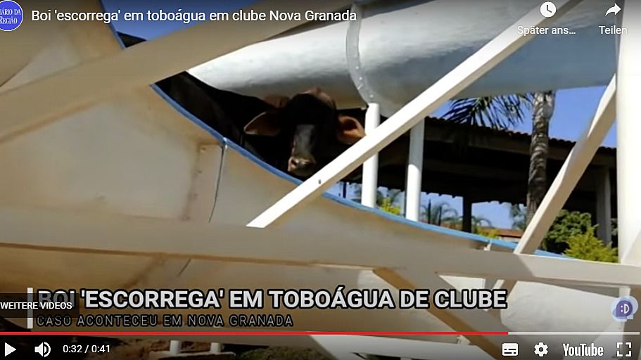 In der Gemeinde Nova Granada in Brasilien riss eine Kuh von einem landwirtschaftlichen Betrieb aus und lief in einen nahegelegenen Freizeitpark. Dort sei das Tier eine Wasserrutsche hinaufgegangen, berichtet Agrarheute.