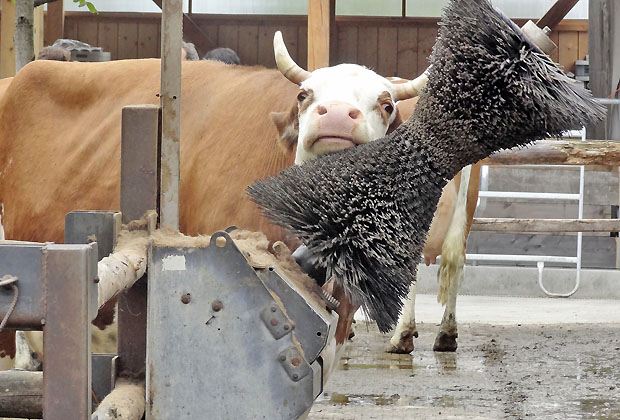 In Kleinbetrieben mit weniger als 20 Tieren ist knapp die Hälfte der Milchkühe «Hornträger». In Betrieben mit 50 oder mehr Vierbeinern beträgt der Anteil nur 4 Prozent. Ohne Hörner benötigt eine Kuh weniger Platz. Denn je grösser der Tierbestand, desto rationeller müssen die Abläufe auf dem Betrieb gestaltet werden.