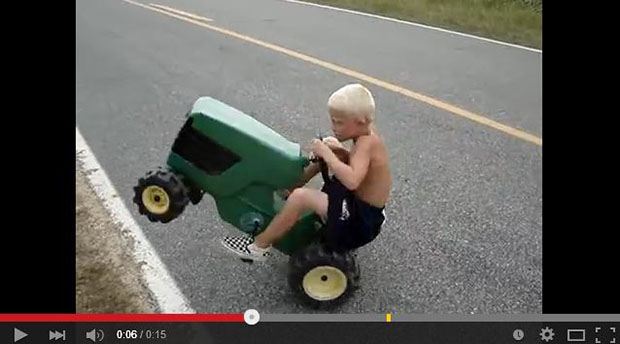 Mit dem Traktor kann man ja allerhand anstellen. So zum Beispiel eine Schrägfahrt mit einem Steyr 8090 oder ein lupenreines Wheelie mit einem John-Deere-Traktor. Was der 6-Jähriger "Wheelie-King" drauf hat, ist bemerkenswert.