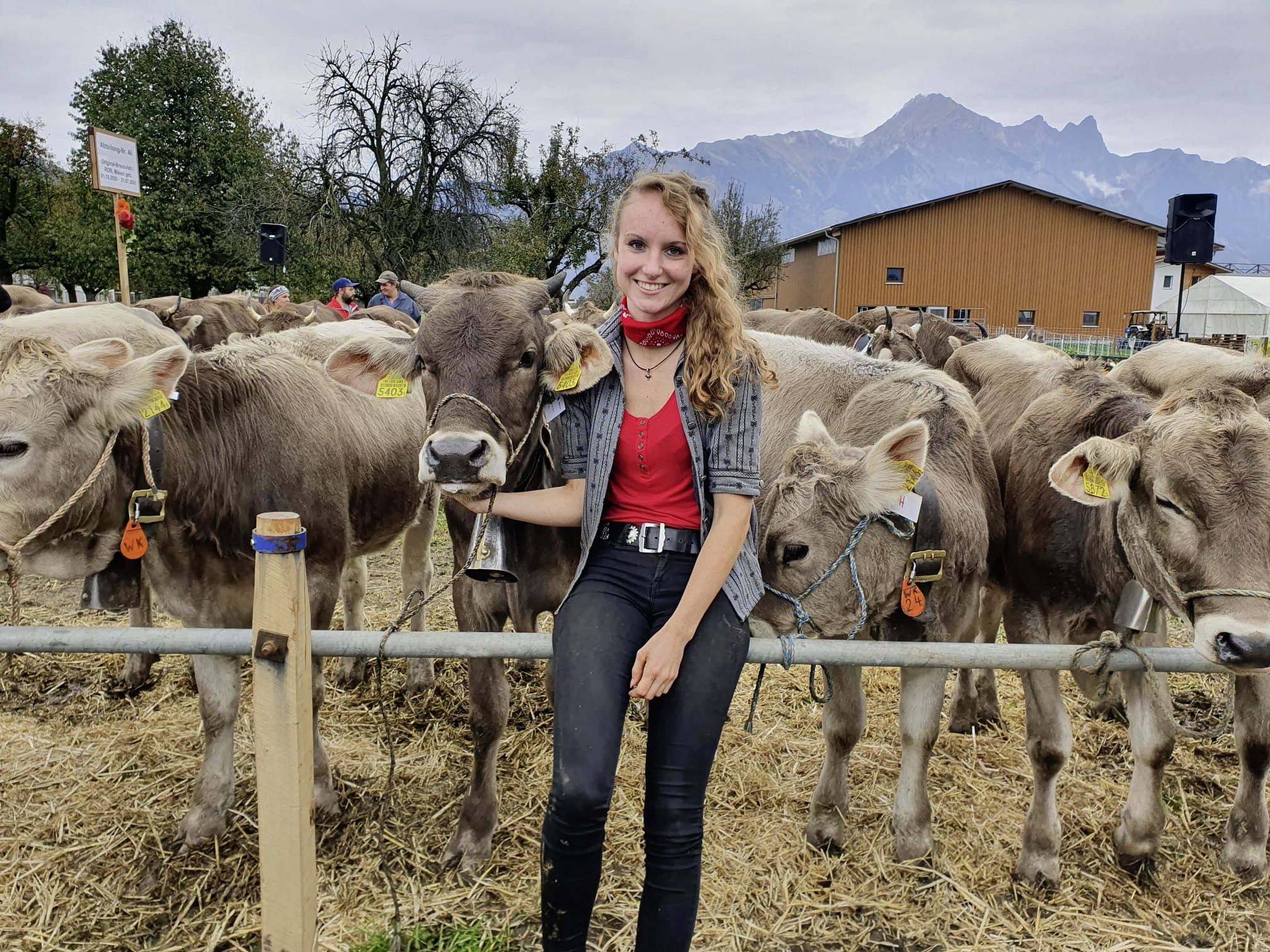 Janine Bartholet: Ich bin 22 Jahre alt und wohne in Plons, einem Weiler von Mels SG, auf einem Landwirtschaftsbetrieb. Ich habe Landwirtin EFZ gelernt. Diesen September konnte ich das Agronomie-Studium an der Hafl abschliessen. Nun arbeite ich auf einem Treuhandbüro. Jeden Morgen und jeden Abend helfe ich im Stall mit. In meiner übrigen Freizeit gehe ich in der Schausaison an viele Viehschauen und Ausstellungen. Im Sommer besuche ich unsere Tiere auf den Alpen.
