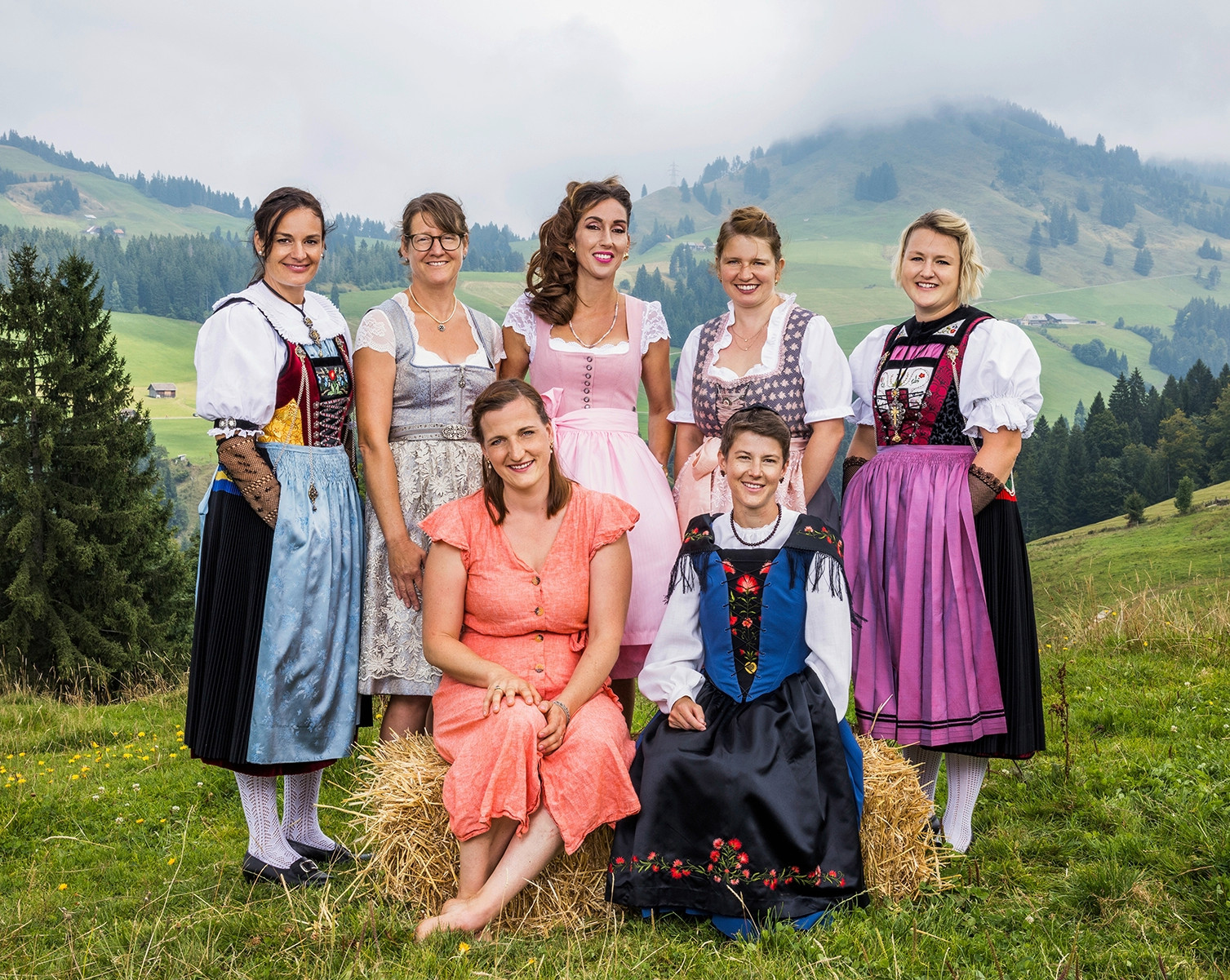 Kandidatinnen der 19. Staffel: Landfrauen: (hinten v.l.) Irène Meier, Karin Landolt, Corina Kohler, Milena Knutti, Lorena Röösli; (vorne v.l.) Stefanie Hitz-Leuenberger, Rahel Margreth