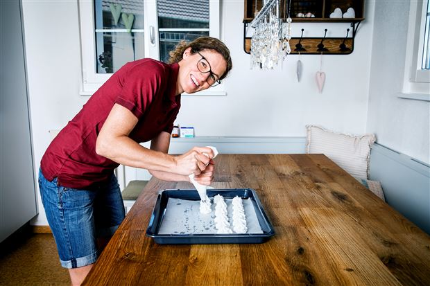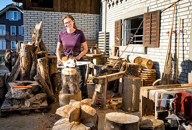 Eigentlich war sie ursprünglich Gärtnerin. Als es darum ging, wer den Hof ihrer Schwiegereltern übernehmen möchte und keine Interessenten da waren, sprang Eveline Villiger ein. Sie besuchte entsprechende Kurse und ist heute Biobäuerin mit Leib und Seele. Den grünen Daumen hat sie sich aber bewahrt und baut in ihrem Garten eine Vielzahl Gemüse an. Dieses kommt dann auch beim Essen für die Landfrauen zum Einsatz.