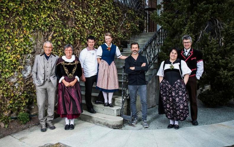Die Siegerin der ersten Landfrauenküche Migga Falett und ihr Mann Fredo aus Bergün GR. Aus Zollbrück im bernerischen Emmental Barbara und Beat Gerber, die Landfrau, die auch schon für das Format «Wenn Landfrauen reisen» nach Texas ging, und aus Schänis im Kanton St. Gallen Brigitte Inderbitzin mit ihrem Mann Adrian. Auch Brigitte hat neben dem Kochen Erfahrung mit Auslandsreisen, ging sie im letzten Jahr doch nach Albanien.