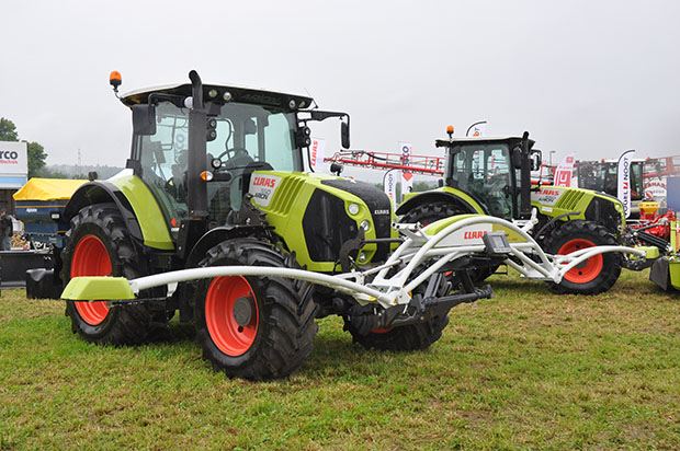 Claas Arion 550 mit Frontmähwerk 3500 FC Disco.