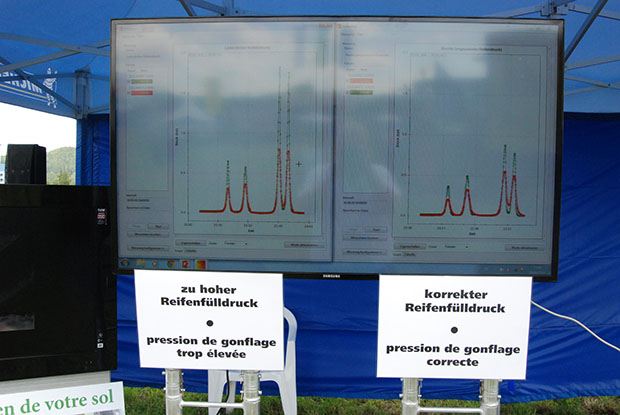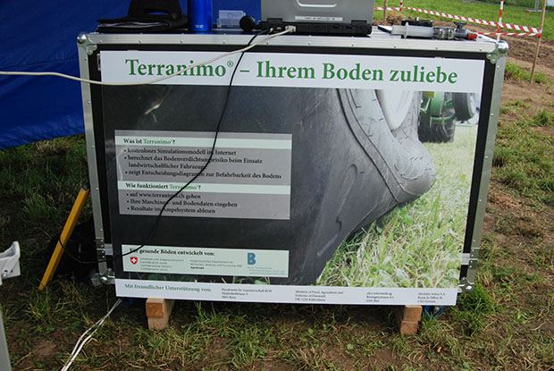 Mit dem Terranimo-Programm kann der Bodendruck gemessen werden. Mit dem Programm können Bauern die Auswirkungen ihrer Fahrzeuge auf den Boden abschätzen und verschiedene Reifen und Einstellungen vergleichen. Das Programm ist gratis siehe unter www.terranimo.ch.