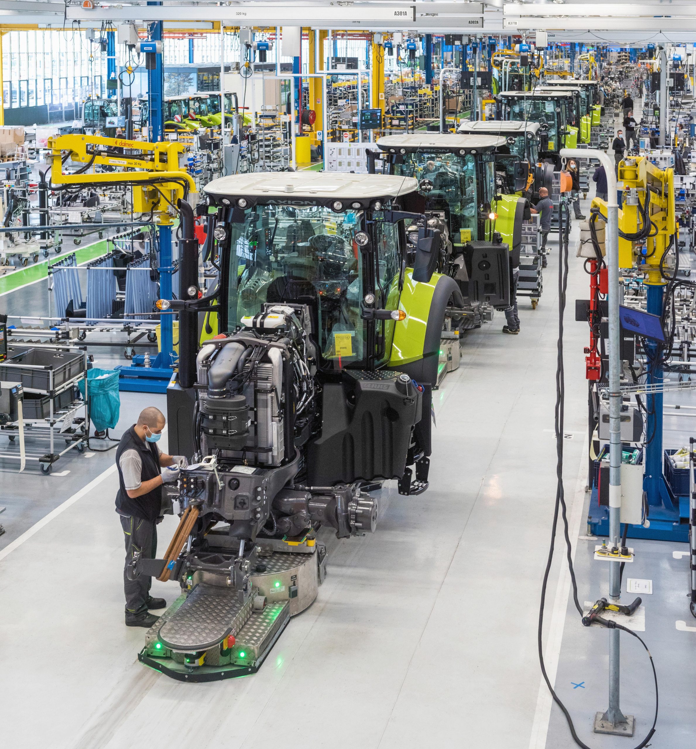 «Wir konnten die Abläufe und die Ergonomie deutlich verbessern, was sowohl die Motivation wie auch die Konzentration unserer Mitarbeiterinnen und Mitarbeiter steigert. Bei der Gestaltung der neuen Fertigung standen neben der Effizienz vor allem die Arbeitsbedingungen im Vordergrund», sagt Martin von Hoyningen-Huene, Leiter der Claas-Traktorensparte und Mitglied der Konzernleitung.