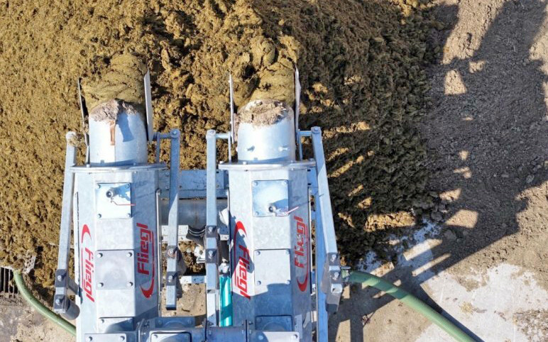 Die Auslegung als Doppelanlage soll zudem für einen hohen Durchsatz sorgen. Dies soll wiederum die Arbeitszeit reduzieren und die Wirtschaftlichkeit steigern. Mit den zwei Pressschneckenseparatoren kann ein Trockensubstanzgehalt von bis zu 40% erreicht werden. Die feste Phase kann als Einstreu oder als transportwürdiger Phosphor-Dünger genutzt werden. «Der flüssige Teil, reich an pflanzenverfügbarem Stickstoff, kann emissionsarm ausgebracht werden», schreibt Fliegl weiter.
