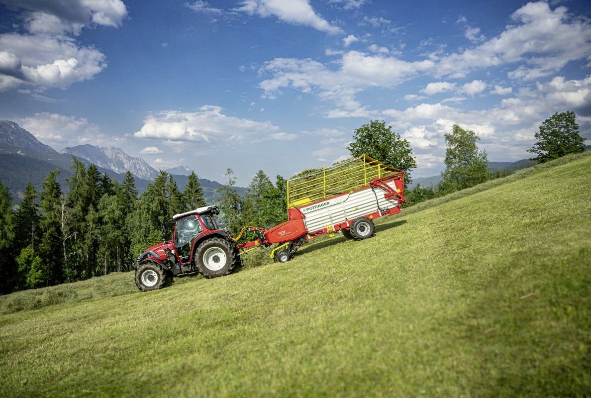 Die Förderschwingen-Wagen Boss Alpin können bereits mit 40 PS und einer Zapfwellendrehzahl von 540 U/min betrieben werden. Grundsätzlich reichen gemäss Pöttinger ein doppeltwirkendes und ein einfachwirkendes Steuergerät mit Rücklauf zum Betrieb des Ladewagens aus. Das ermögliche den Einsatz auch mit älteren oder kleinen Traktoren. Die Anhängung ist möglich für die Zugmaul- oder Hitchanhängung bis hin zur K80 Kugelkopfkupplung in tiefliegender Ausführung. «Eine Deichselverlängerung erlaubt den Einsatz mit breit- oder doppelbereiften Traktoren», hält Pöttinger fest.