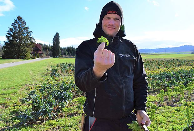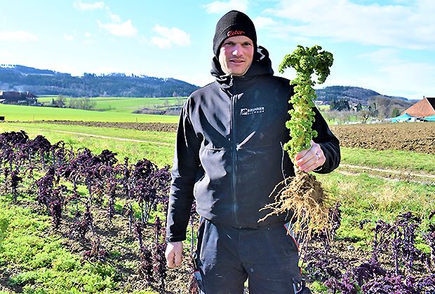 "Als ich dann Esther Kern an einem Federkohl-Dinner von Pro Specie Rara kennenlernte, öffneten sich für mich neue Tore". Heute beliefert der Bio-Bauer mit "Leaf to Root"-Gemüse die Spitzengastronomie. Vor allem mit Spinatwurzeln, Federkohltrieben und gestängeltem Nüssler. "Wir lassen den Stängel extra wachsen, weil er mehr Biss hat. Richtig zubereitet ist der ein echtes Erlebnis", so Brunner.