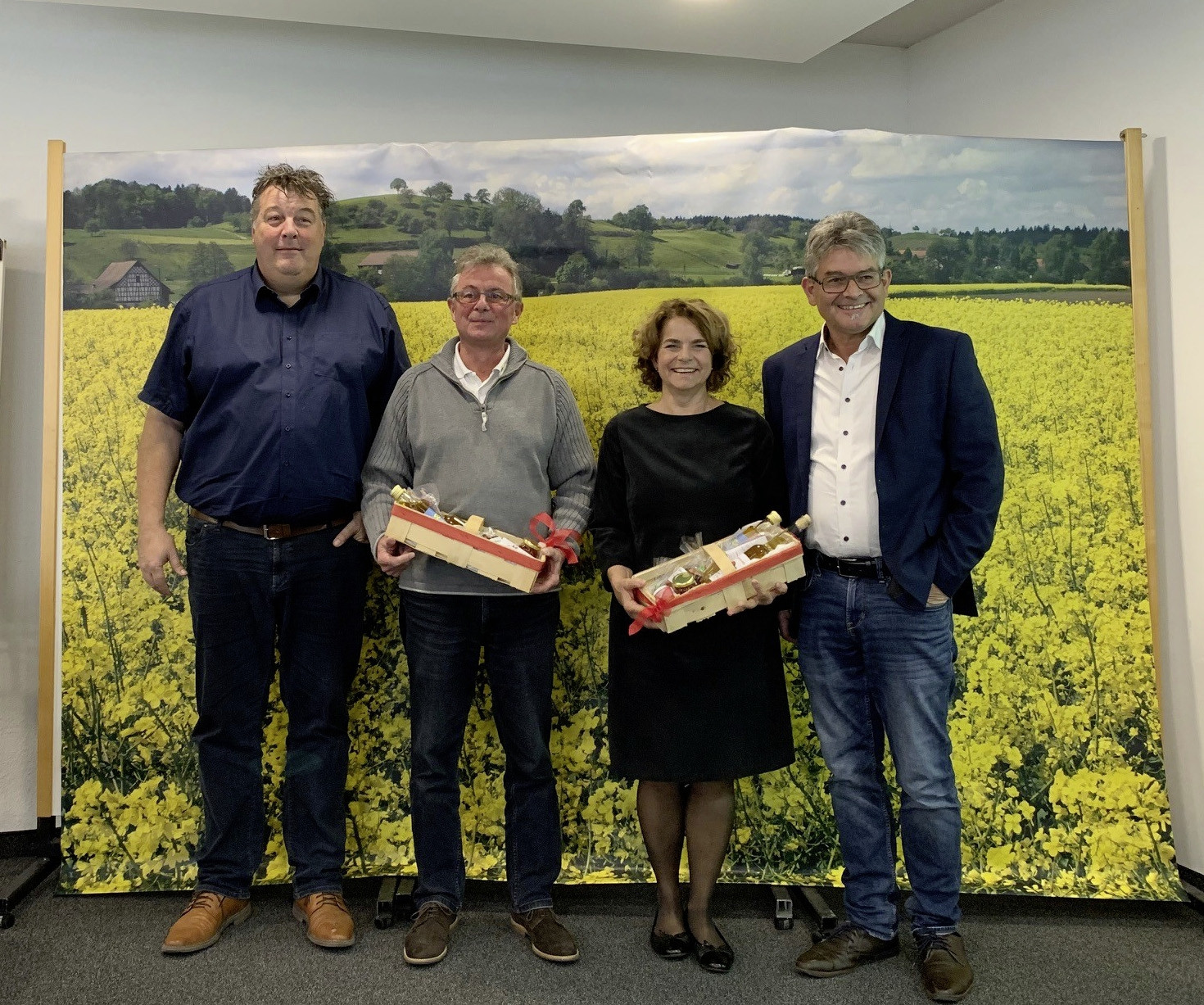 Ferdi Hodel (Geschäftsführer ZBV) und Martin Haab (Präsident ZBV) freuen sich mit den Referenten Markus Hochstrasser (Pflanzenschutzdienst Strickhof) Regine Sauter (Syngenta) über die gelungene Martini PK.