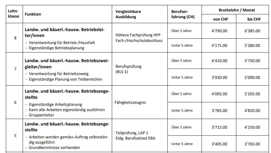 Die Arbeitsgemeinschaft Berufsverbände Landwirtschaftlicher Angestellter (ABLA) fordert eine Lohnerhöhung für alle Stufen. Die Organisation begründet ihre Forderungen mit der Teuerung sowie dem Arbeitsmarkt. In den vergangenen beiden Jahren stieg der Lohn nur minim.