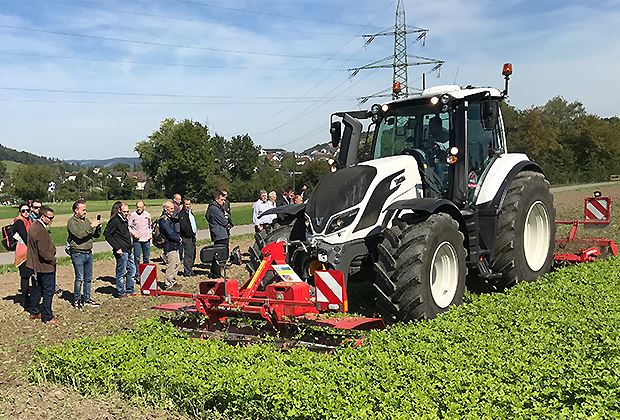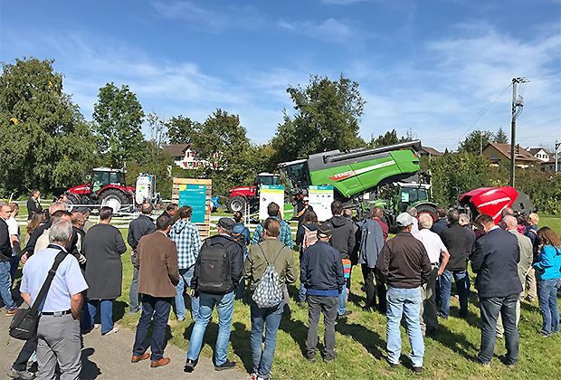 An einer weiteren Praxisstation wurde das «Control Traffic Farming» demonstriert. Um den Boden schonend zu bearbeiten machE es vor allem bei Grossmaschinen Sinn, immer dieselben Fahrspuren zu benutzen, heisst es im Communiqué. Ebenfalls punktgenau erfolgt die ortsspezifische Düngung.