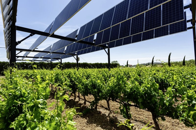 In Südfrankreich steht eine solche Anlage über 4,5 Hektaren Weinreben, die im Rahmen des französischen staatlichen APV-Förderprogramms Sun Agri erstellt wurde. Die Module werden zusätzlich unterstützt von Wetterdaten gesteuert. Wenn ein Starkregen naht, wechseln sie auf horizontal. Zudem arbeiten die Module zweiseitig, können also reflektierendes Licht vom Boden nutzen. Das erzeugt bis zu 13 Prozent mehr Stromertrag. Die gleiche Technologie mit beweglichen Modulen wird auch auf Gewächshäusern getestet.