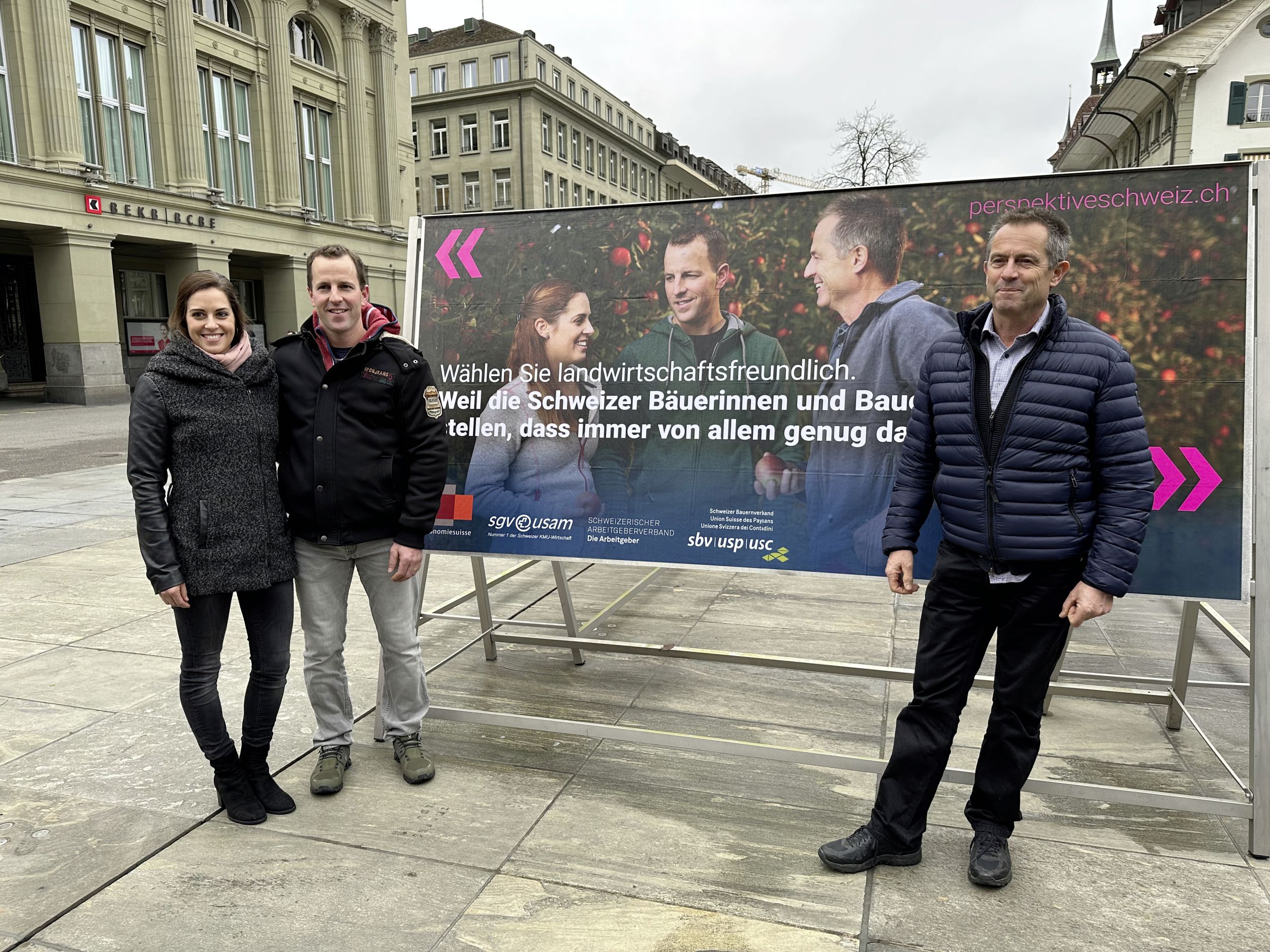 Auf dem Bundesplatz stellten Vertreter von Economiesuisse, Gewerbeverband, Arbeitgeberverband und Bauernverband entsprechende Wahlplakate vor. Diese sind Teil einer in mehreren Wellen und über verschiedene Kanäle geplanten Kampagne mit dem Titel «Perspektive Schweiz», wie es in einer Mitteilung hiess. Dass die vier Organisationen im Wahlkampf gemeinsame Sache machen, hatten sie bereits im Oktober angekündigt.