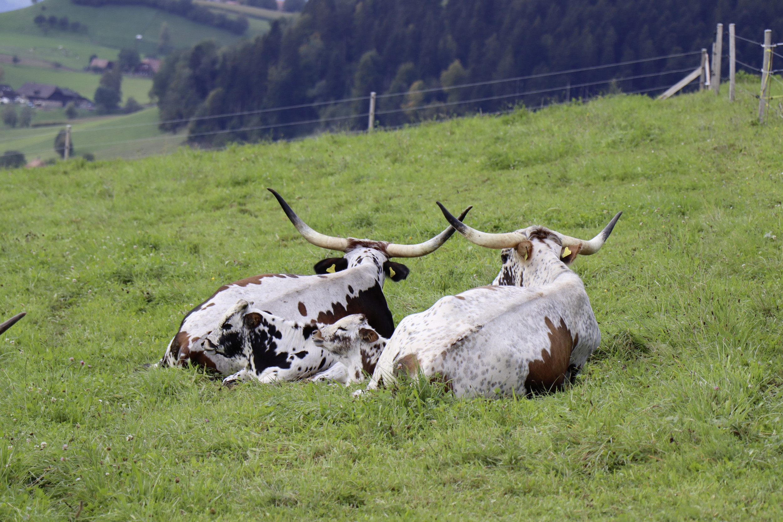 Auf der Website der Moosacker-Ranch steht mit sympathischem Schalk: «Die Moosacker-Ranch steht schon seit 200 Jahren zentral abgelegen auf dem Möschberg in der Gemeinde Oberthal. Wir haben sie 2019/2020 neu aufgebaut und dafür gesorgt, dass die voralpine Hügelzone des Emmentals anständig behornt wird.» Und so zogen im April 2020 die ersten drei Texas-Longhorn-Kälber bei Sommer-Kellers ein. Drei Monate später folgten vier Tiere aus Österreich, weitere fünf Monate später zogen drei Tiere aus Deutschland dazu.
