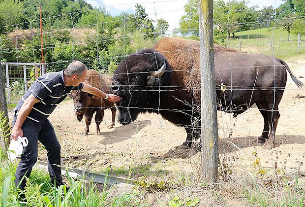 Nebst Schweinen und Galloway-Rindern halten die Dettwilers seit rund 20 Jahren auch Bisons. Derzeit sind es 17 Tiere. Weil Bisons erst im Alter von fünf Jahren Schlachtreife erlangen und damit rund vier Mal so lange brauchen wie ein normales Rind, sind die Produktionskosten hoch. "Wir können gar nicht alle Kosten auf das Fleisch überwälzen, sonst würde dieses viel zu teuer", erklärt Dettwiler. Bisons seien ein Hobby für ihn, er halte sie aus Faszination an Wildtieren. Und aus Marketinggründen. "Viele Leute kennen uns wegen der Bisons."