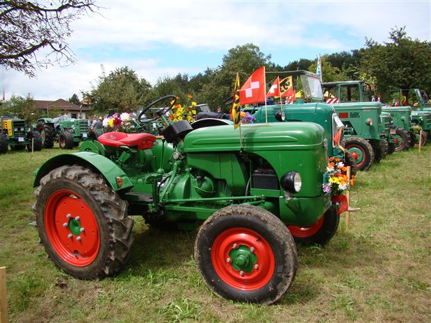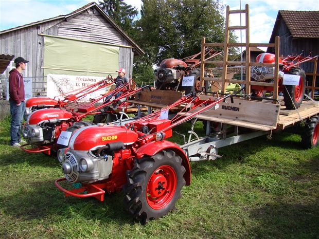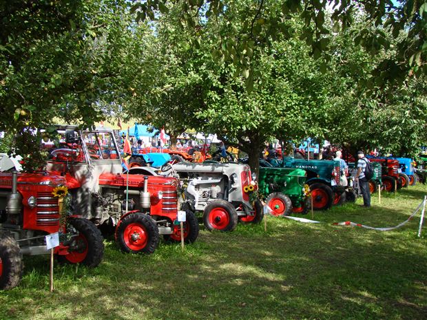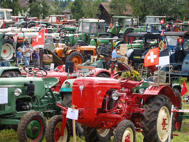 Zahlreiche Beizli luden direkt neben den parkierten Oldtimern zum Fachsimpeln unter Gleichgesinnten ein. Ob fein säuberlich unter Obstbäumen in der Hoschtet aufgereiht, auf freiem Feld oder auf den Vorplätzen der Bauernhäuser, überall konnten sich die insgesamt 4500 Besucher von der Mechanisierung der Landwirtschaft des vergangenen Jahrhunderts faszinieren lassen. Etliche Vorführungen gaben einen Einblick, was es bedeutet haben musste, mit diesen Maschinen an der Arbeit zu sein.