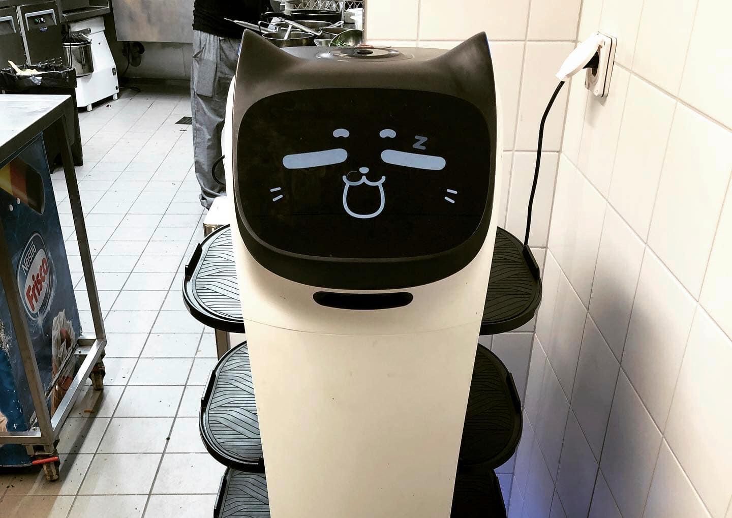 Der Roboter «Bella» bringt in einem Lausanner Restaurant das Essen an den Tisch und räumt das schmutzige Geschirr wieder ab. Der Roboter mit seinem Katzenkopf ist die neue Attraktion und entlastet seine menschlichen Kollegen ein wenig.