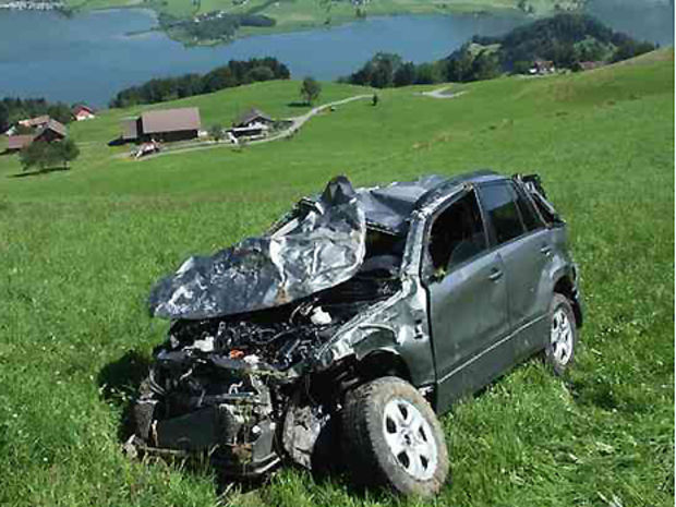 Auf einer Alp oberhalb von Lauerz hat sich am Sonntag gegen 11 Uhr ein parkiertes leeres Auto selbständig gemacht, ist 450 Meter eine Alpweide hinunter gerast und hat sich dabei mehrfach überschlagen. Das Auto ist ein Wrack. Es gehörte einem 70-jährigen Älpler.