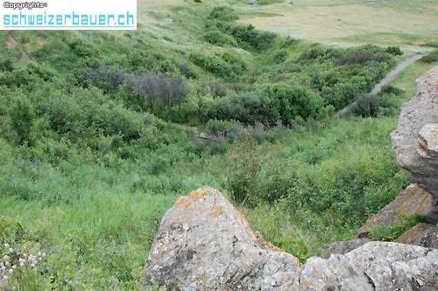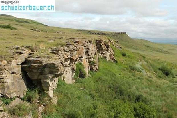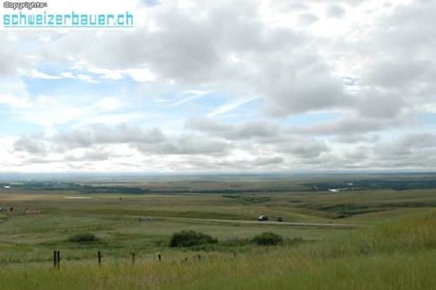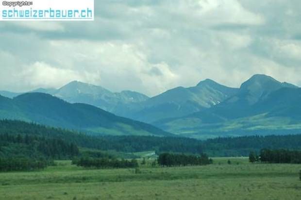 Die Schweizer Bauer-Reisegruppe fährt in ihrer fünten Etappe von Lethbridge über die Prärie an den Fuss der Rockys. Übernachtet wird erstmals in den Bergen, im Olympiaort von 1988, Canmore.