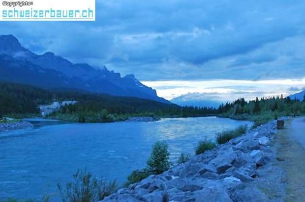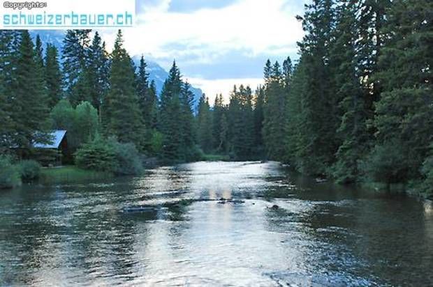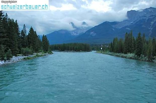 Der Bow River durchquert den Ort. Dieses Wasser fliesst in den Atlantik. Einige Kilometer bergwärts folgt die Wasserscheide.
