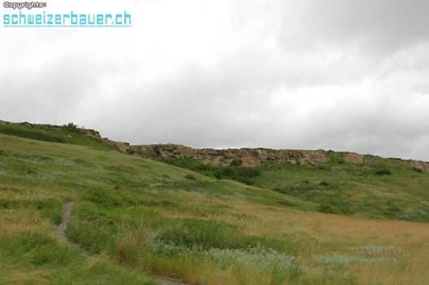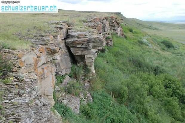 In grossen Tempo und ohne Chance, den Absturz zu verhindern, rannten die Bison von hier oben gegen den Felsvorsprung zu.