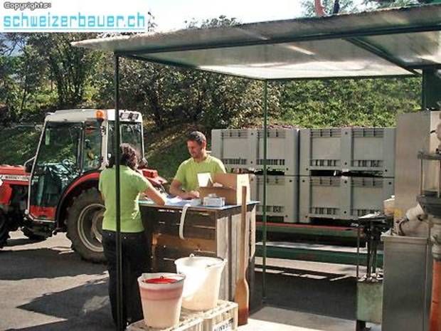 Die Weinlese hat soeben begonnen. Die ersten Bauern liefern Trauben an.