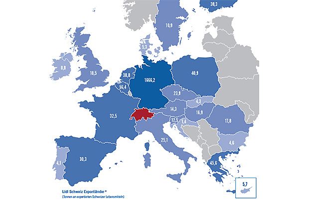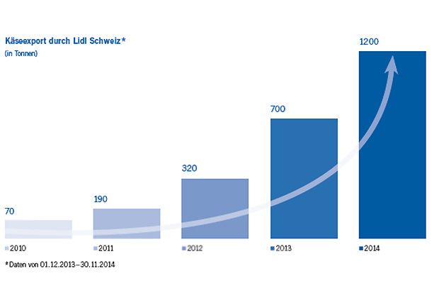Im Jahr 2014 haben die Lidl-Filialen in 23 europäischen Ländern insgesamt über 2100 Tonnen Schweizer Produkte absetzen können. Mit 1200 Tonnen bleibt der Schweizer Käse Lidl-Exportklassiker. Der Käseexport durch Lidl Schweiz konnte im Vergleich zum Vorjahr erneut fast verdoppelt werden. Wichtigster Käseabnehmer ist Lidl Deutschland.