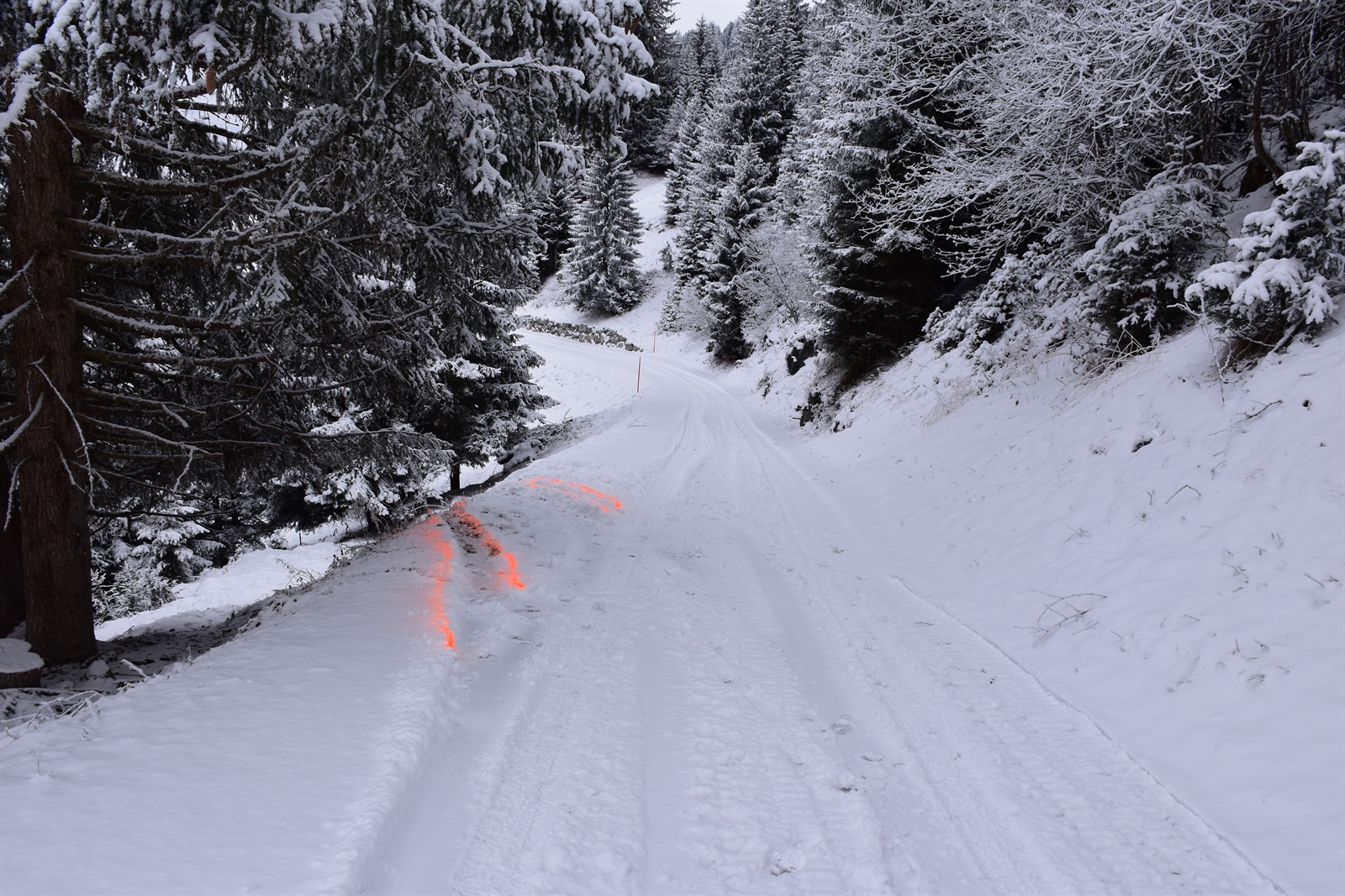 Der Wagen war bei der Örtlichkeit Malient über den schneebedeckten linken Fahrbahnrad hinaus geraten. In unwegsamem Gelände kam das Fahrzeug 30 Meter unterhalb des Weges zum Stillstand.