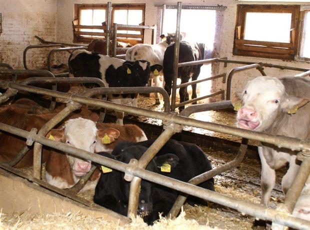 Die Masttiere sind auf unterschiedliche Art untergebracht: Die 77 Kälber auf Stroh, die 88 Tiere in der Vormast in einem Boxenstall mit Schiebeentmistung und kleinem Auslauf ins Freie sowie in einem Laufstall mit Lospa-Spaltenboden, und die 88 Ausmastmuni in einem separaten Gruppenlaufstall, ebenfalls auf Gummimatten-Spaltenboden.