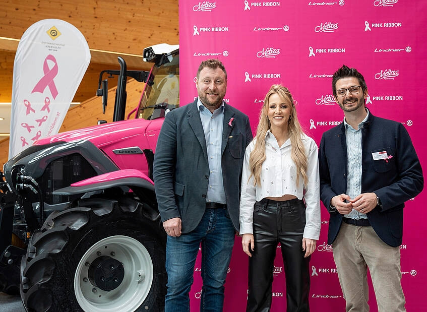 Das Tiroler Familienunternehmen Lindner unterstützt die Österreichische Krebshilfe. Die Rosa Schleife, «Pink Ribbon» genannt, steht dabei für eine erhöhte Aufmerksamkeit für Brustkrebserkrankungen. Konkret hat der Kundler Landmaschinenspezialist einen Lintrac 80 in einer speziellen «Melissa-Edition» produziert.