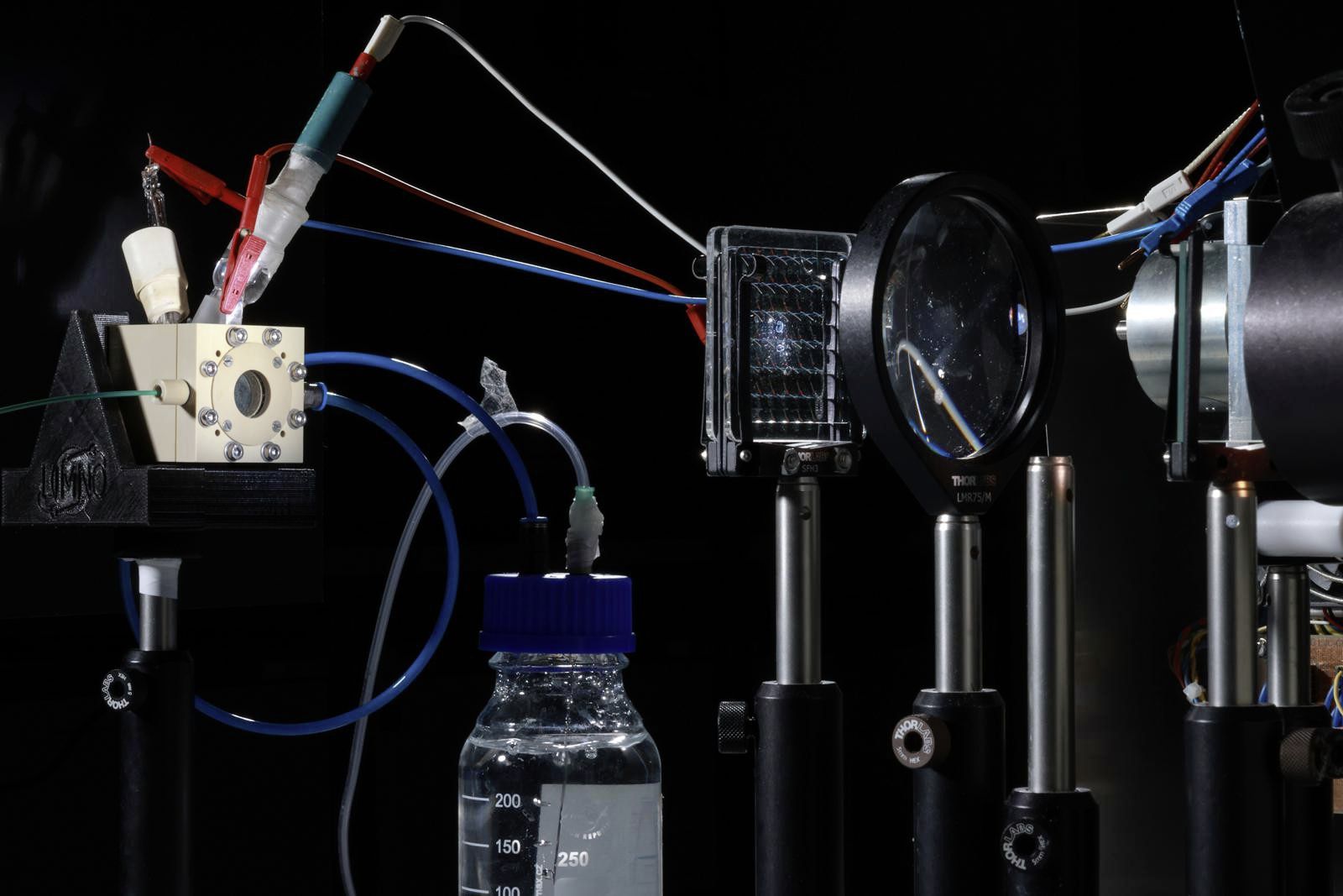 Die Innovation am künstlichen Pflanzenblatt sind neuartige Elektroden, die zwei wichtige Eigenschaften haben: Sie sind porös, um den Kontakt mit dem Wasser in der Luft zu maximieren, und transparent, um die Sonneneinstrahlung auf die Halbleiterbeschichtung zu maximieren.