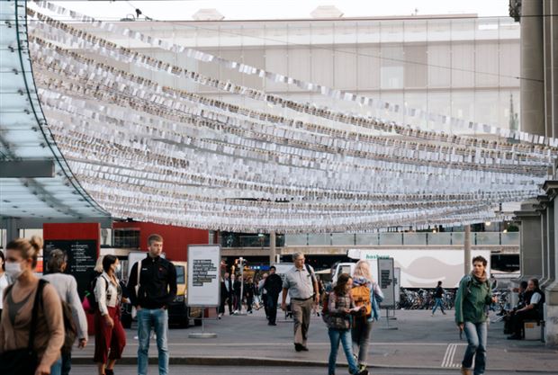 Freiwillig Engagierte haben auf dem Berner Bahnhofplatz im Zusammenhang mit dem Foodsave-Festival «88 Tausend Tausendernötli» aufgehängt, schreibt die Oekonomische Gemeinnützige Gesellschaft Bern (OBB) in einer Mitteilung. Während der Kulinata Bern flattern die Geldscheine nun eine Woche lang im Wind und erinnern Passantinnen und Passanten daran, wie jede und jeder dazu beitragen kann, Foodwaste zu verhindern und damit viel Geld zu sparen.