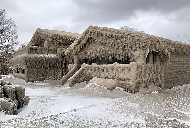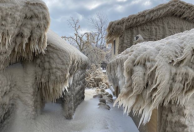 Tagelang wirbelte heftiger Wind das Wasser des Eriesees auf, nun sind mehrere Häuser entlang des Ufers in eine dicke Schicht aus Eis gehüllt. Die Szenen aus der Stadt Hamburg im Norden des US-Bundesstaates New York erinnern an den Disney-Hit «Die Eiskönigin». -> Video