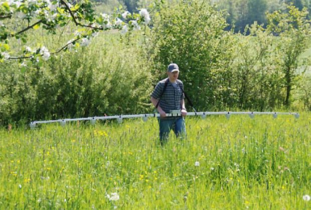 Der Tierschutz rief dazu auf, Jungtiere durch sogenannte Infrarot-Wildretter vor den Mähmaschinen zu schützen. Mit einer teleskopartig auf 5.5 Meter Breite ausgezogenen Stange, an der Sensoren befestigt sind, schreiten die Anwender das Feld ab. Die beste Einsatzzeit ist der frühe Morgen. Die Körperwärme der Jungtiere heben sich da noch deutlich vom kalten Erdboden ab.