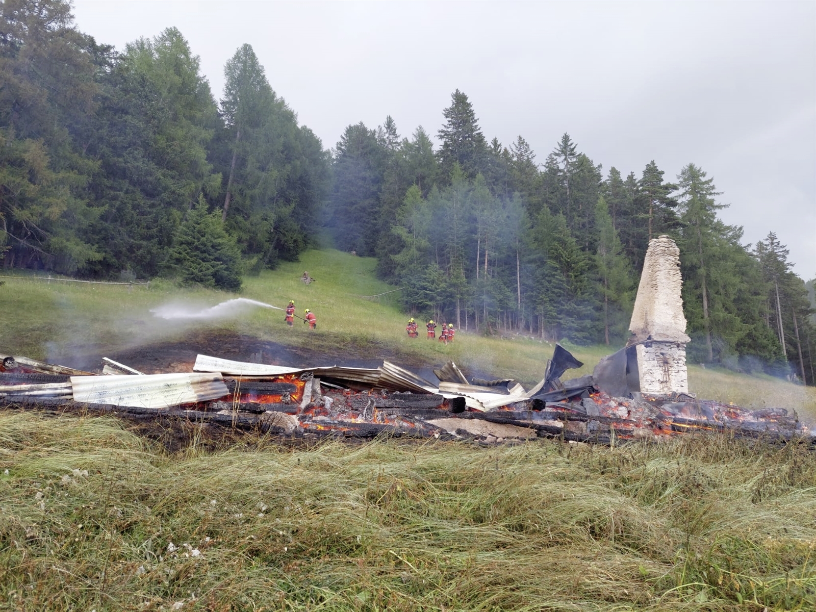 In Scheid GR ist am Samstagmittag ein Maiensäss mit Stall komplett niedergebrannt. Menschen und Tiere kamen nicht zu Schaden.