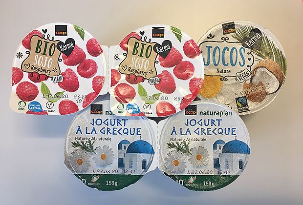 Das Gleiche gilt für die Schweizer Bio Vollmilch, auf Blickhöhe sind stattdessen die Drinks aus Soja und Kokos und viel Wasser platziert. Ebenso ist es bei den Joghurts, wo der Karma-Shop in der Platzierung die Alternativen aus Soja oder Kokos betont, während die Schweizer Bio-Joghurts schlecht platziert sind.