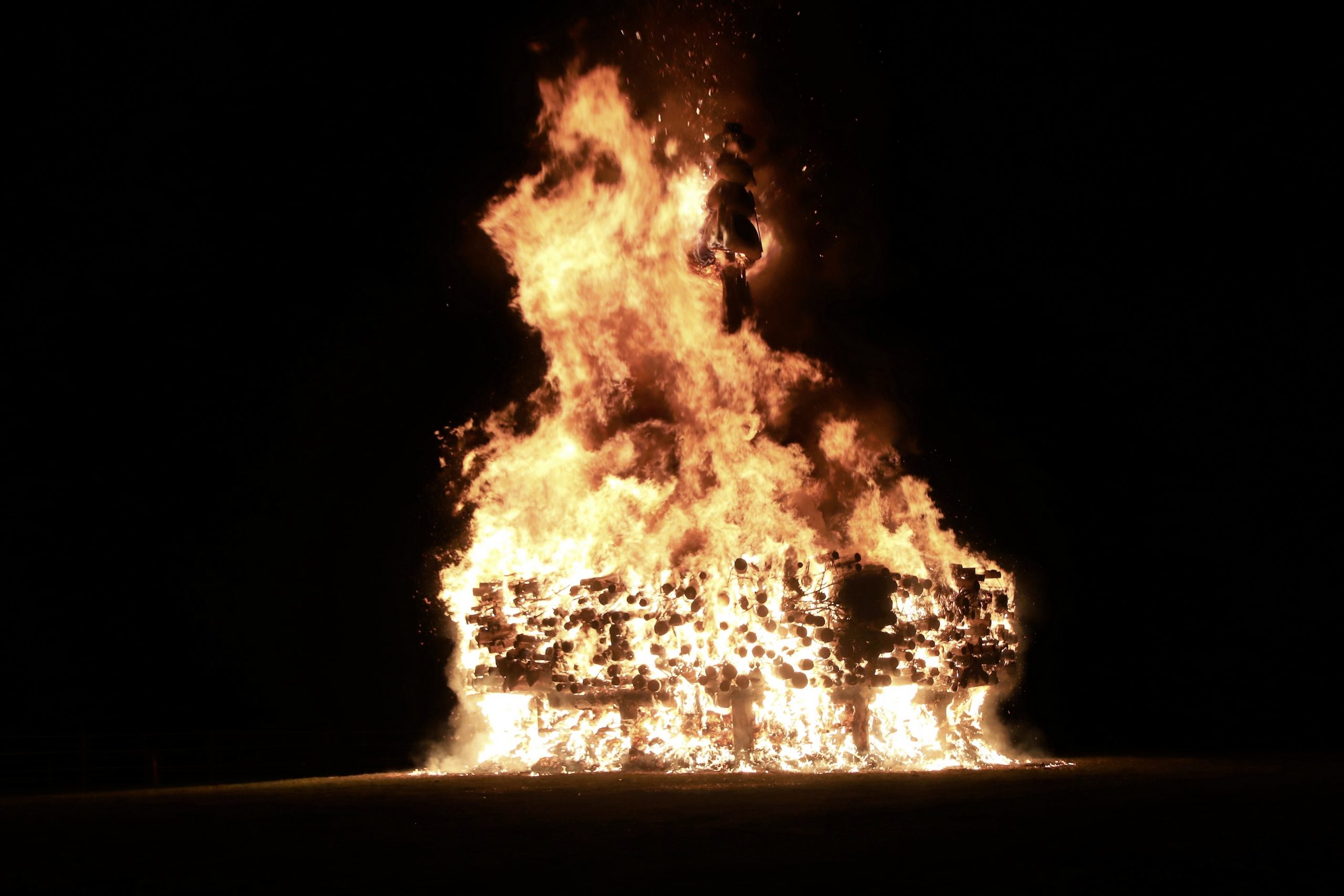 Doch in diesem Jahr ist coronabedingt einfach alles anders und es war ausser dem Knistern des Feuers sehr still. Es gab bereits keine Fasnacht mit Maskenball und Umzug. Doch die Marthaler Dorfjugend als Pappenmannli liessen sich vom heimtückischen Virus nicht abhalten, rüsteten und sammelten seit den vergangenen Herbstferien das notwendige Holz und bauten ganz der Tradition entsprechend das Feuer mit seiner speziellen Form auf dem Lindenhof trotzdem auf.