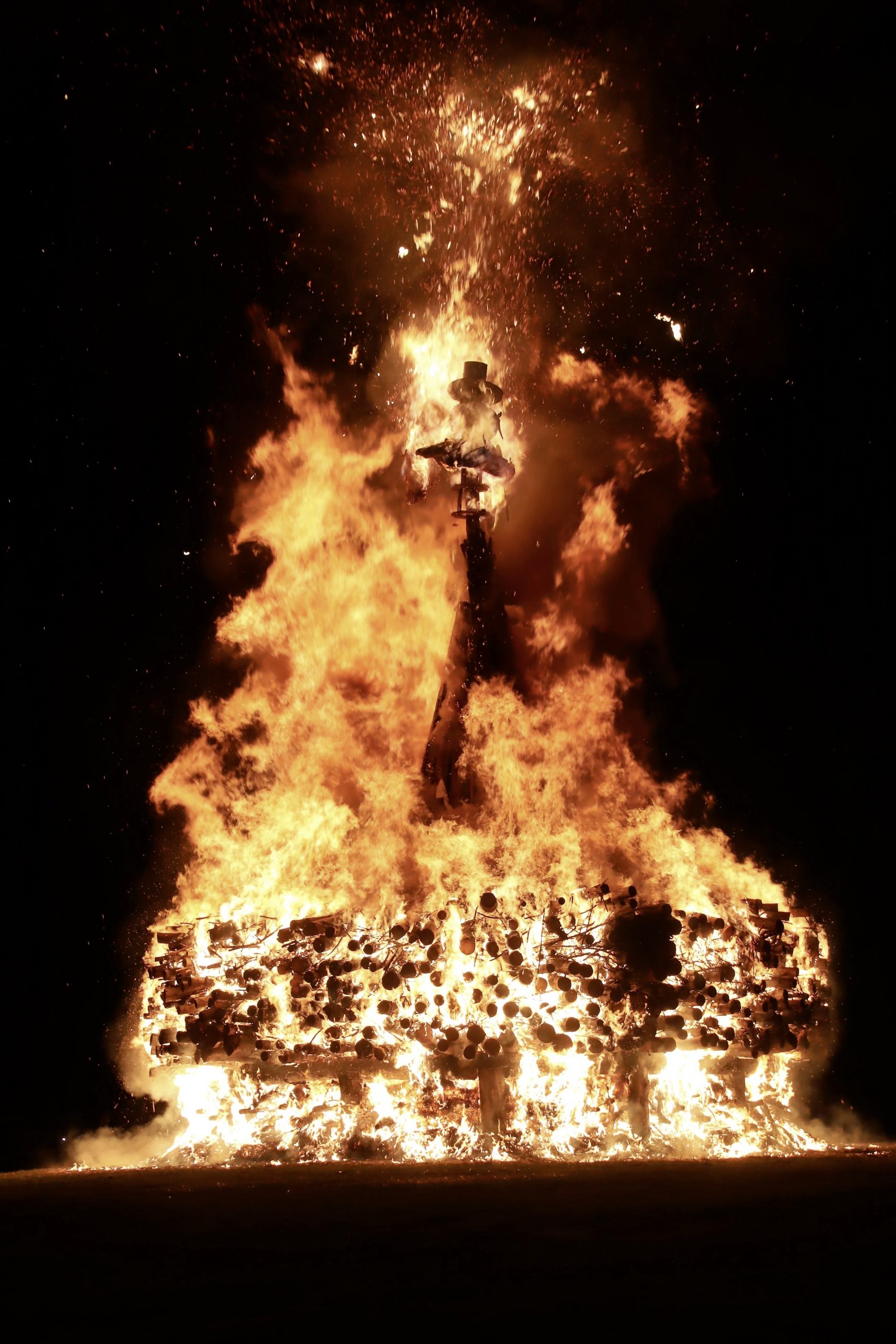 Dabei durfte auch der Böög nicht fehlen. Doch sein Leben auf der Stange dauerte am Tag des Frühlingsbeginns nur wenige Minuten. Doch das Dorf musste nicht ganz auf dieses immer wieder sehr spektakuläre und funkenstiebende Ereignis verzichten.