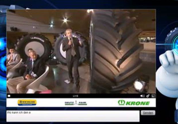In einer Live-Internet-Übertragung hat Reifenhersteller Michelin am Dienstag Nachmittag (22. Oktober, 15 Uhr) den neuen Ackerschlepper-Reifen IF900/65R46 der Hochleistungsreihe AxioBib mit Ultraflex-Technologie vorgestellt. Übertitel der Live-Übertragung: Michelin präsentiert den grössten Traktorreifen der Welt.