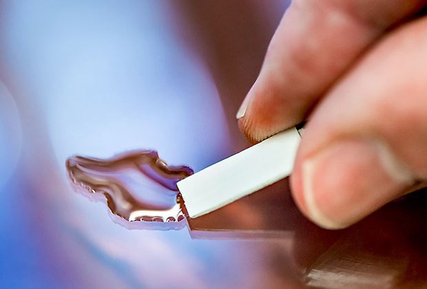 In dem Teststreifen, der kleiner als ein Eurostück ist und auch weniger kosten soll, verbirgt sich ein kleines Labor. Das Messvolumen umfasst wenige Mikroliter Pflanzenflüssigkeit. Herzstück des Streifens ist ein Pflanzenprotein, das Nitrat umwandelt, die sogenannte Nitratreduktase. Sie fügt jedem Nitrat ein Elektron hinzu. Der Test beginnt, sobald der Landwirt den Teststreifen ins Messgerät eingelegt hat und somit Elektronen zur Verfügung stehen. Er ist beendet, wenn das gesamte Nitrat der Probe mit Elektronen versehen ist und keine Elektronen mehr fliessen.