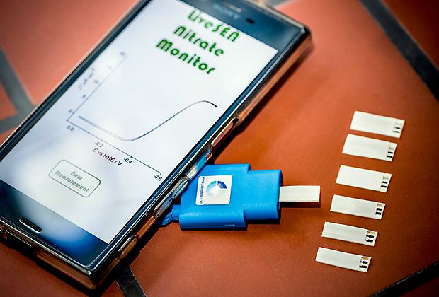 Den neuen Sensor können die Landwirte nach Angaben der Bochumer Universität selbst direkt auf dem Feld einsetzen. Das mit aufgedruckten Einweg-Elektroden versehene Gerät sei nur wenig grösser als ein Centstück. Der Nitratgehalt des Bodens werde in kürzester Zeit aus einem Tropfen Pflanzensaft ermittelt und an das Smartphone des Nutzers geschickt, der so vor Ort den Düngerbedarf seiner Pflanzen feststellen könne.