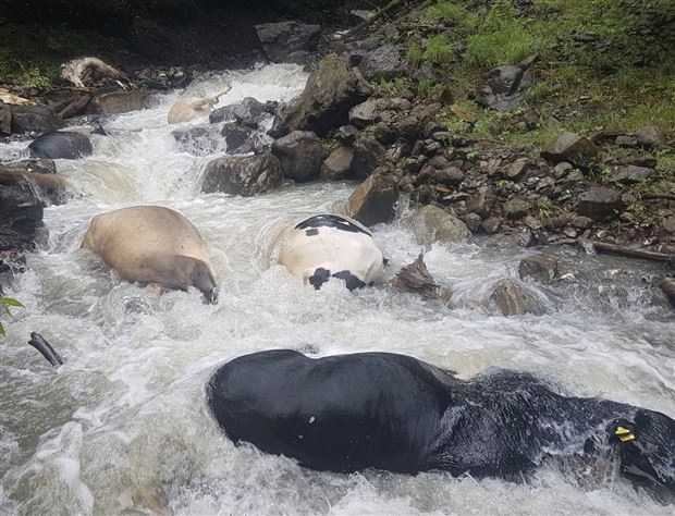 Man habe DNA-Proben genommen, teilte die Kantonsverwaltung am Freitag auf dem Kurznachrichtendienst Twitter mit. Sie reagierte damit auf einen Tweet mit Bildern von Kuhkörpern, die in einem Bach und in einem steilen Waldstück liegen.