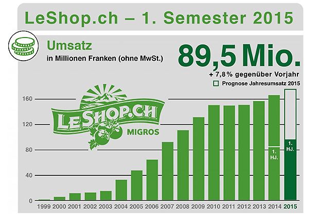 LeShop ist gemäss eigenen Angaben mit einem Jahresumsatz von 165 Mio. Fr. im letzten Jahr Marktführer im Internet-Detailhandel. Coop@home, das Online-Angebot des Konkurrenten Coop, erreichte 2014 Verkäufe im Umfang von 114 Mio. Franken. Von Coop@home werden keine Halbjahreszahlen bekanntgegeben.
