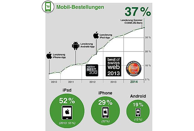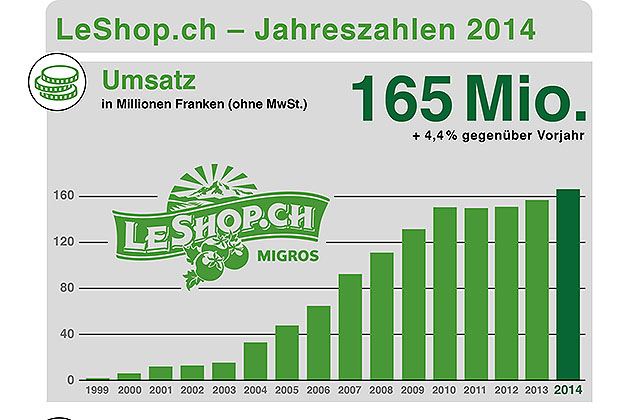 Für 165 Millionen Franken hat LeShop.ch im Jahr 2014 Lebensmittel verkauft. Das sind 7 Millionen mehr als im Jahr zuvor. Die Zahlen bestätigten den Wachstumstrend, schreibt die Migros-Tochter in einer Medienmitteilung vom Montag. Zum Wachstum beigetragen haben die mobilen Geräte. 2014 erfolgten mehr als 37 Prozent der Bestellungen bei LeShop.ch über ein Smartphone oder ein Tablet. Vor drei Jahren hatte der Anteil noch bei gerade mal 11 Prozent gelegen.